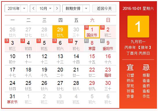 根据国务院办公厅有关通知精神,并结合企业在线公司实际情况,经研究决定,2016年十一国庆节放假安排如下: