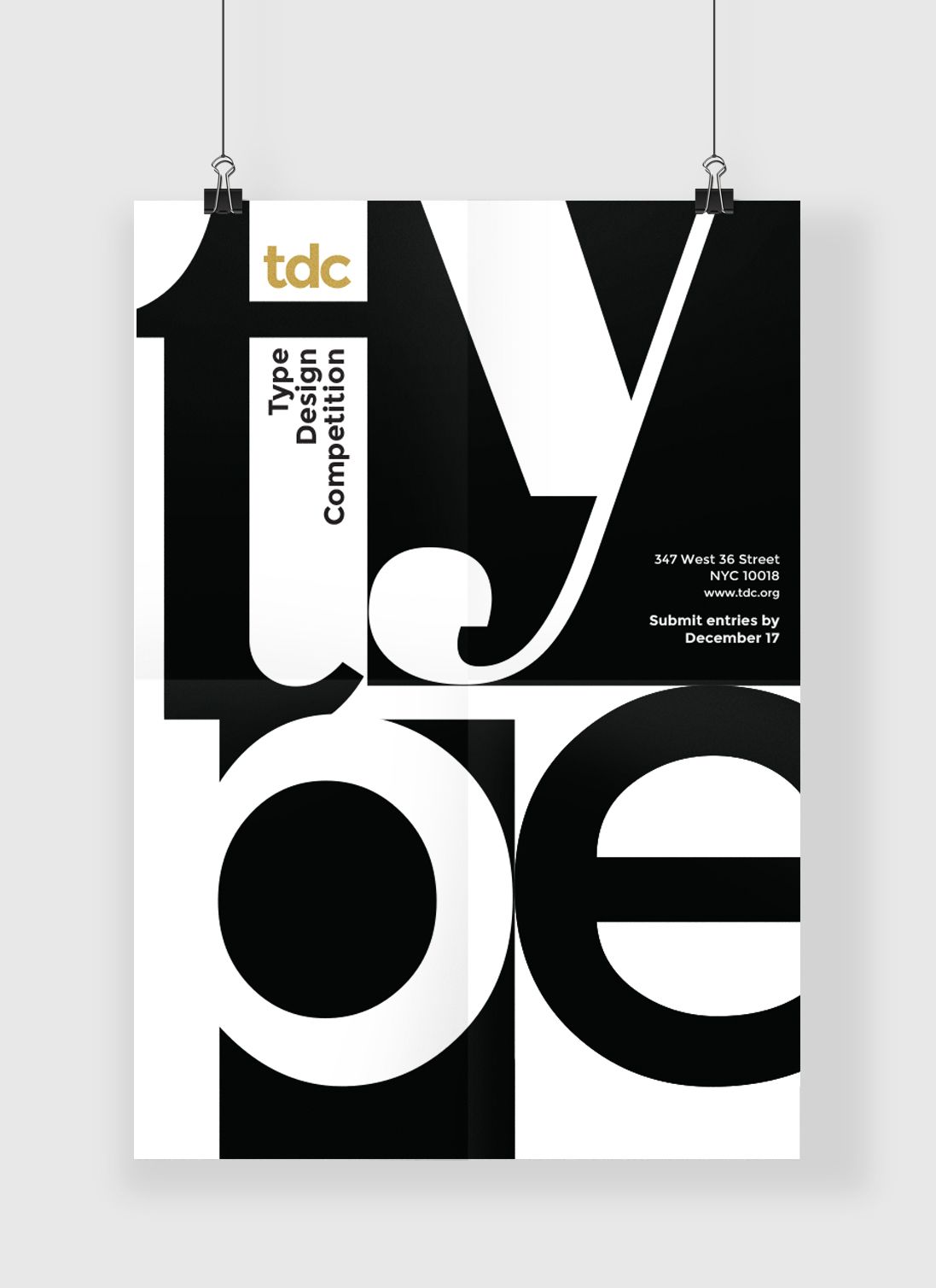 因为是字体设计比赛,所以作者将type这几个字母进行了艺术化处理,符合海报的主题。并且y o用负空间来表现,是为了增强节奏感,如果都是实体的话,会显得很呆板。y o e这三个字母的笔画结构基本都是曲线,如果以实体形式表现,字母又非常大,画面会失衡,所以作者将字母放在方形色块内,以平衡画面。